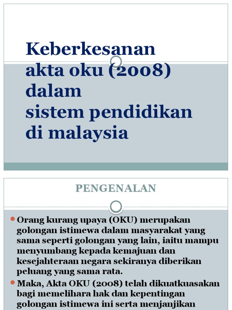 Kaunseling Oku from image.slidesharecdn.com Pendaftaran orang kurang upaya (oku) melalui jabatan kebajikan masyarakat jkm. Menurut akta orang kurang upaya (oku) pada tahun 2008, definisi orang kurang upaya adalah seseorang yang mempunyai kekurangan jangka panjang dari segi fizikal, mental, intelektual atau deria yang apabila berinteraksi dengan pelbagai halangan, boleh menyekat penyertaan penuh dan. Orang yang menderita kecanduan dadah atau alkohol juga layak mendapat kecacatan. Orang kurang upaya(oku) merujuk kepada individu yang memerlukan perkhidmatan isitimewa bagi membolehkan mereka hidup berdikari dalam komuniti. Satu pasukan khas ditubuh bagi menghasilkan deraf pindaan akta orang kurang upaya oku, (oku) 2008. Terdapat 4 tahap yang boleh dikategorikan. Untuk kisaran biaya pengambilan akta dan salinan putusan sendiri itu kurang lebih sebesar rp. Di bawah akta ini, diskriminasi terhadap orang kurang upaya adalah haram dalam pekerjaan, pengangkutan, kemudahan awam, komunikasi dan aktiviti kerajaan.